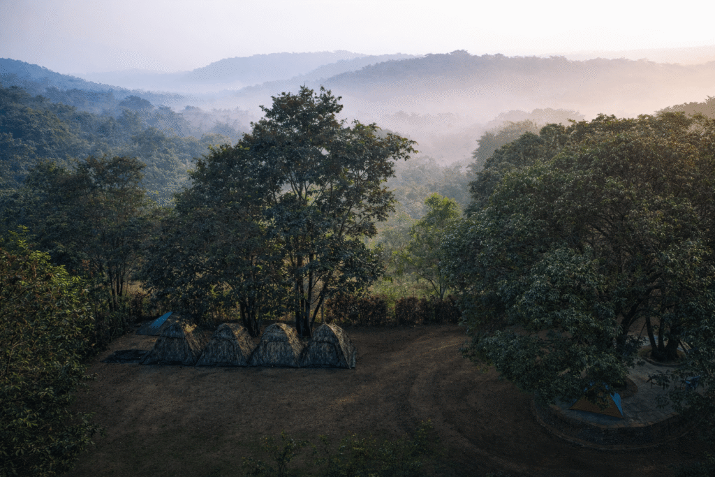 Walking through Mani Forest Camp means moving beneath tall trees, crossing natural trails, and feeling completely disconnected from urban noise. The forest floor, shaded paths, and cool atmosphere create a deeply calming experience for every visitor.